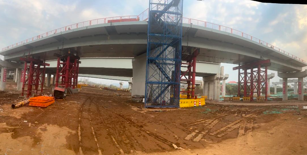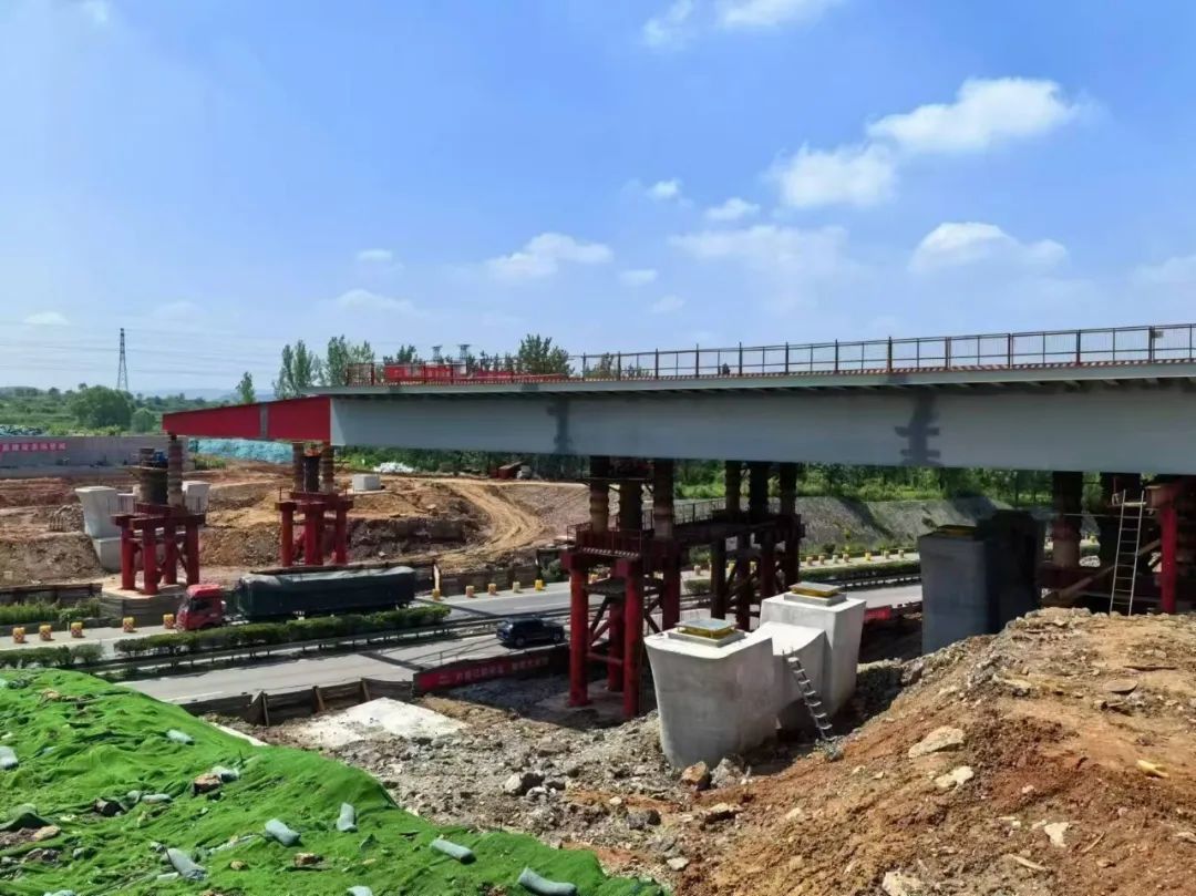 目前项目建设按计划推进,项目部正在有序推进装焊主线道路抗震挡块、加开匝道泄水孔及桥面涂装等工作。
