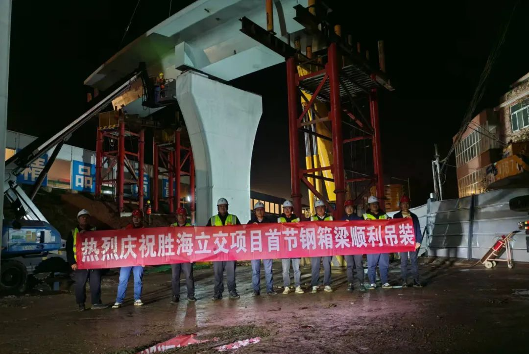 近日,长江新区胜海大道立交项目首节钢箱梁顺利完成架设,标志着该项目江北快速路沿线桥梁施工进入冲刺阶段。