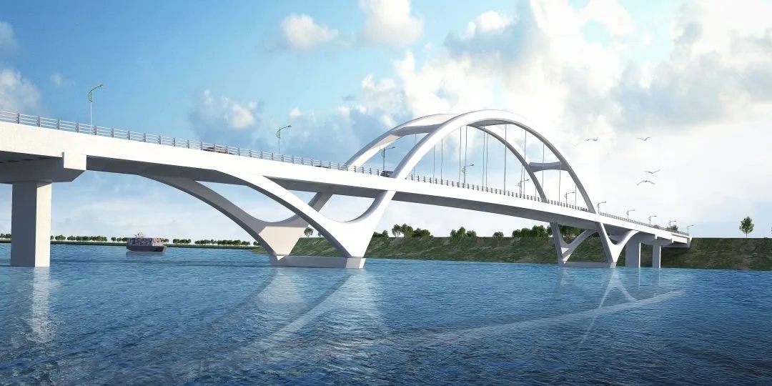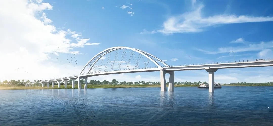 长乐大桥 -“双鹤共舞”,跨越抚河故道,总长约429.5m,主桥为(45+120+45)m飞燕式拱桥。