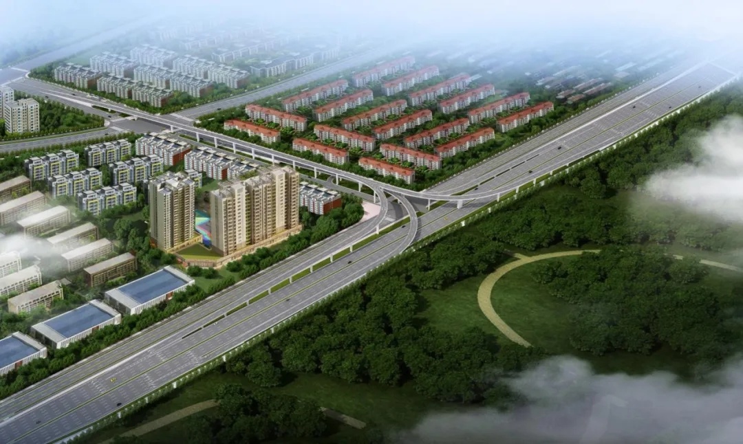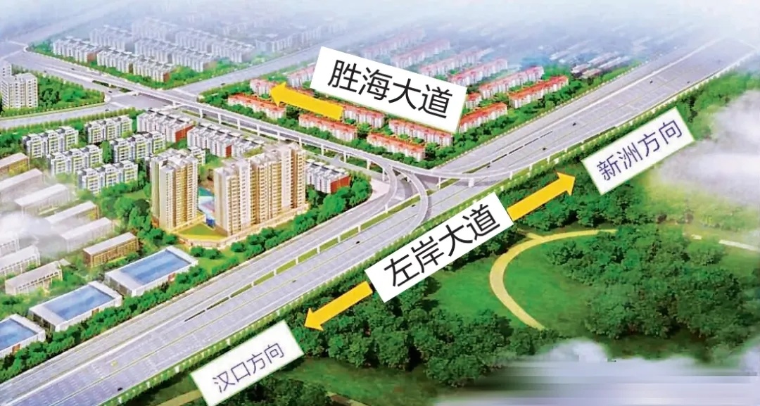 该项目位于武汉市长江新区五通片区左岸大道(江北快速路)与胜海大道相交节点。