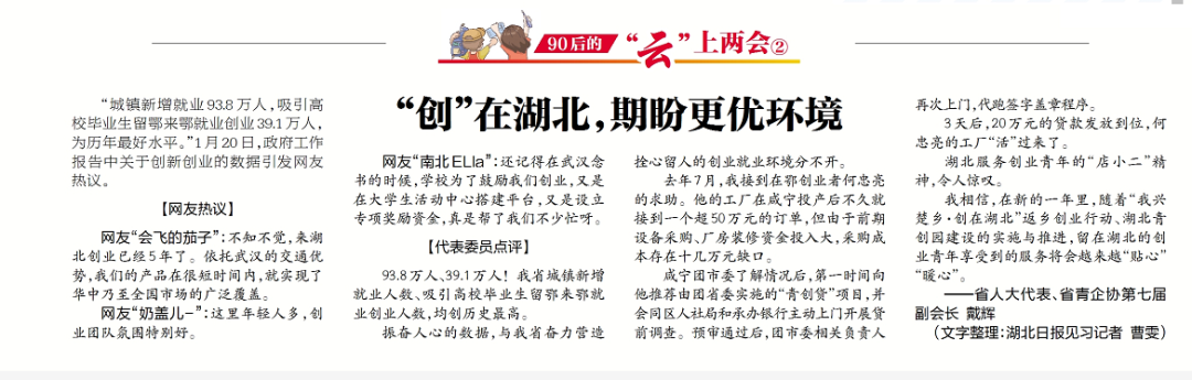 我相信,在新的一年里,随着“我兴楚乡·创在湖北”返乡创业行动、湖北青创园建设的实施与推进,留在湖北的创业青年享受到的服务将会越来越“贴心”“暖心”。