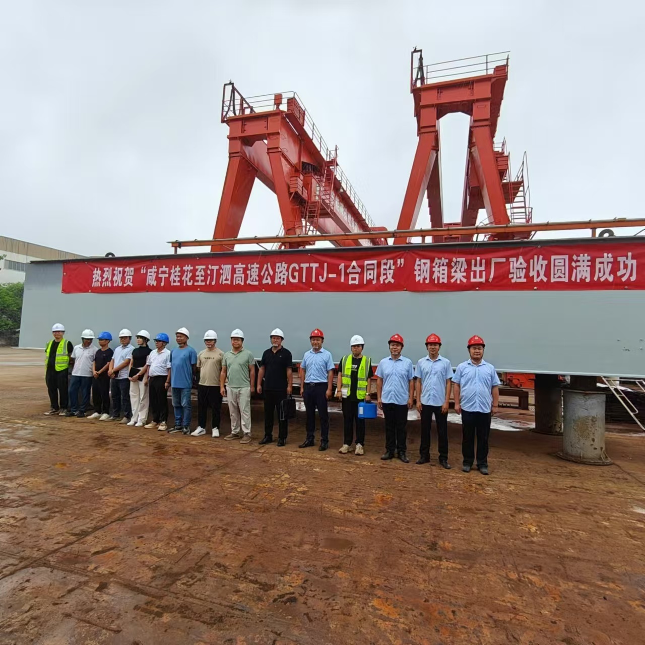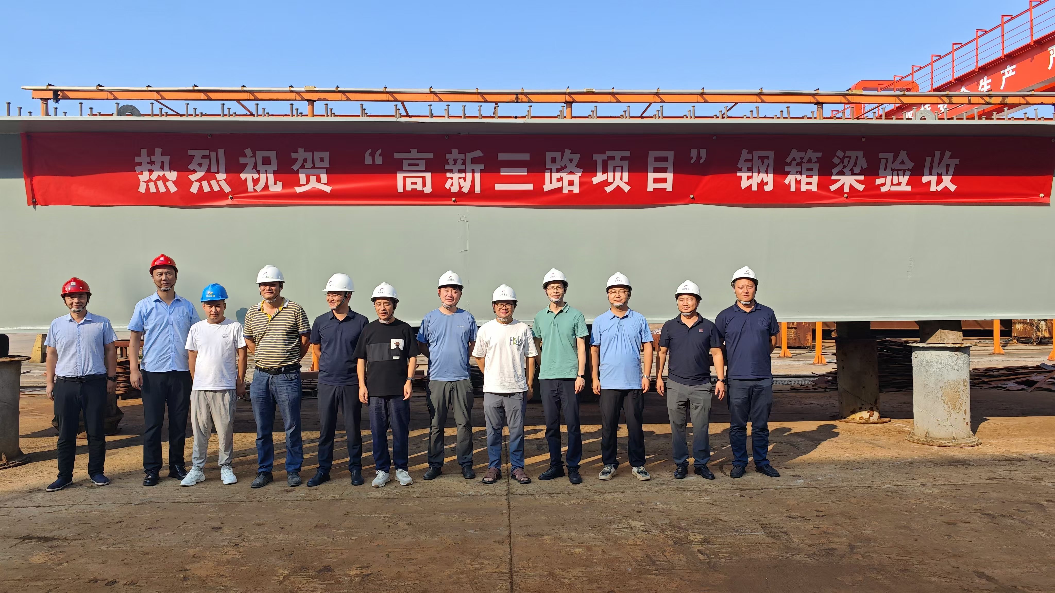 目前,项目钢梁安装专项施工方案经专家组评审顺利通过,首制件钢箱梁已在厂区验收通过,正按计划有序推进!